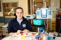 This was all done as a school assignment in the oncology ward. They have a full time teacher employed to help the patients with their work. She either works with their regular school teacher, or tutors them privately if they have had to drop out for the year. Some kids simply miss an entire year for treatment and recovery, others just a few weeks. Greg was taking classes full-time at Clark Community College in order to graduate from high school with his associates degree. He had also done this his junior year so he had enough credits to graduate. He began treatment in October, so we let him know he could just stop school altogether, and still be ready for BYU in the Fall. He wanted to finish with the AA; mostly to say that he had finished what he started out to do. He loved it when he was well enough to go and visit with the ladies at school. Art was particularly stimulating and when he heard it may lose some funding, he wrote the little essay to go with the tile. (Most of the art he did was with CHAP [Children’s Healing Art Project] because they came at least once during our stay and would bring supplies to our room).