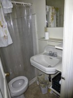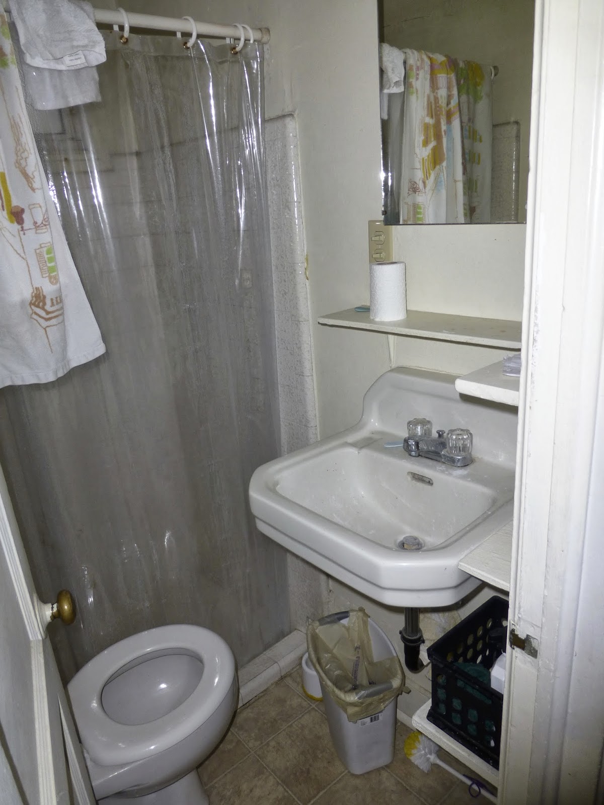| Our basement bathroom – you could sit on the toilet, brush your teeth, and wash your hair – simultaneously |