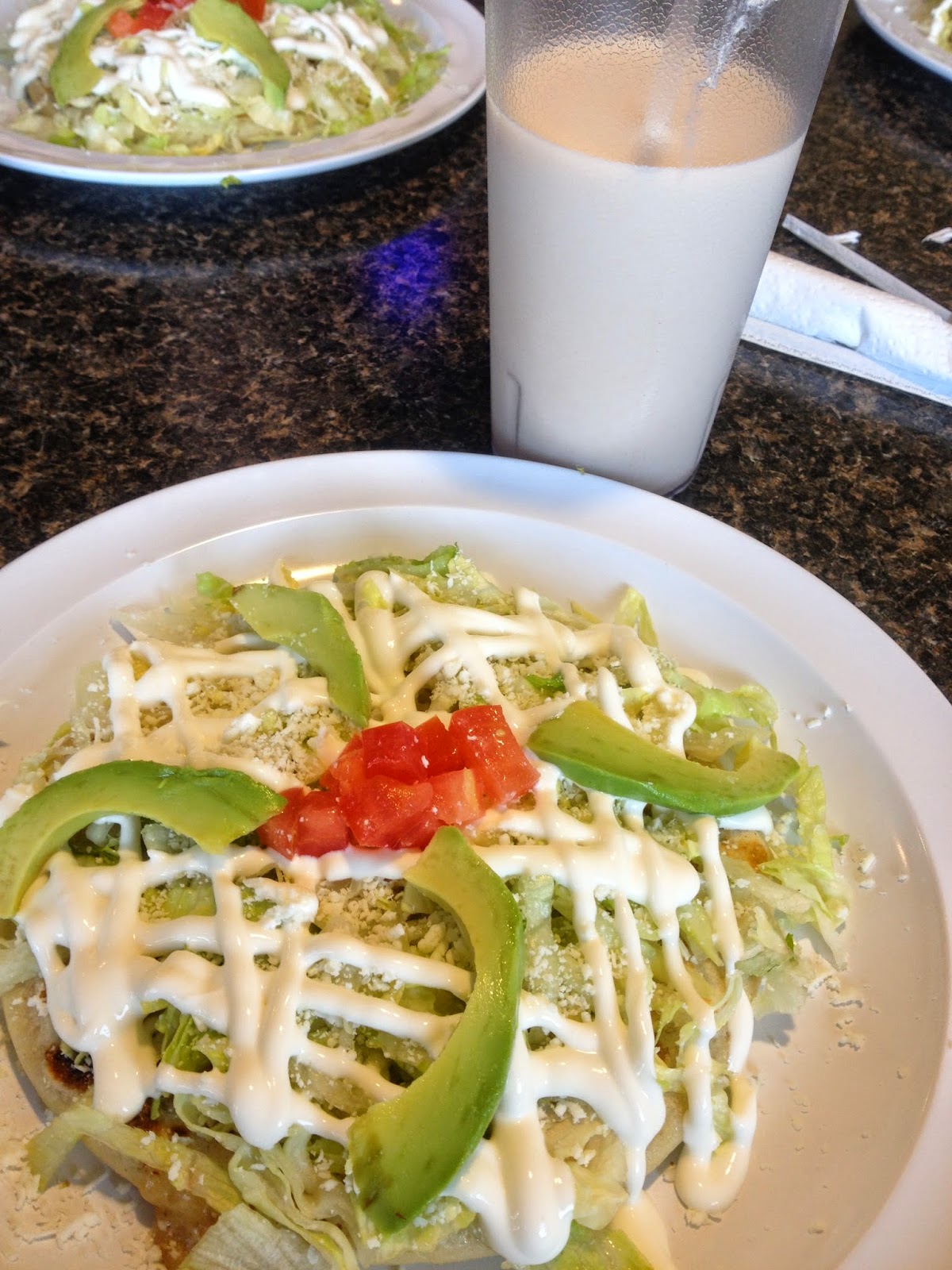 | Pupusa de Carne Asada with Horchata! Yummy. |