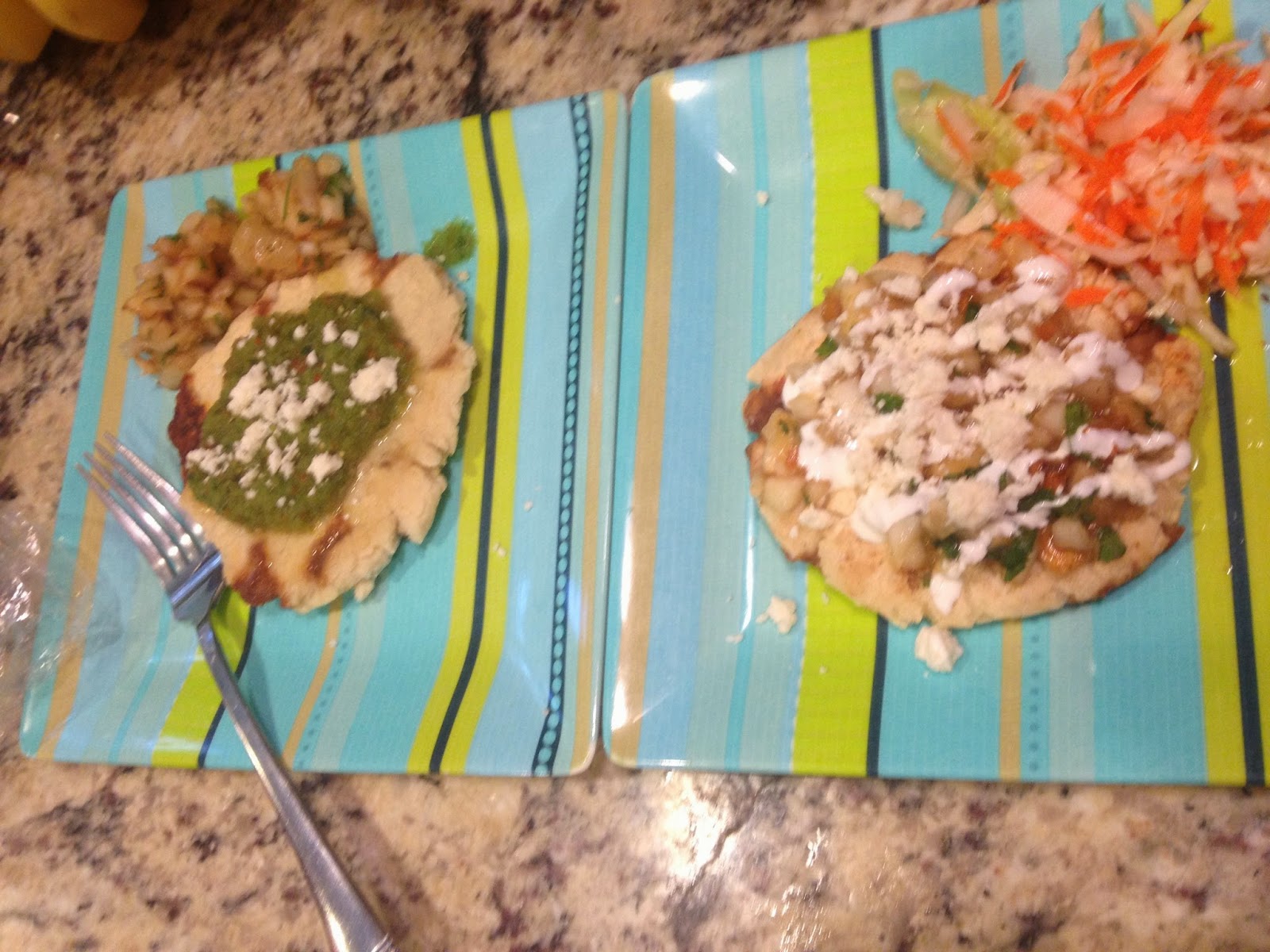 Pupusas made the traditional way are messy (because we don’t know what we are doing), but they actually taste better than the easier,pre-smashed, sandwich style. I think that this is because of the thicker masa.