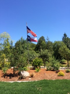 | Getting into the spirit of things – Greg sent Mark a Texas flag for Fathers Day. The boys notice that all of their Texas roommates decorate with it – so we are practicing! |