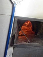 Back in the van, we could hardly believe it when we pulled up to a pizzeria and they met us with hats and aprons for the four children. The kids washed up and were led into the kitchen where they mixed a large batch of pizza dough to be used that evening, enough for 50 pizzas. Dough was supplied for each of them to create their own pizza. Italian pizzas are much more simple than ours – and it was a bit of a surprise to the chef when Natalie requested ham and pineapple… but he supplied some chunks of fresh pineapple and prosciutto. Mark and I were sent outdoors to the table so that we could not see them preparing heart-shaped pizzas for the parents. Each staff member then ordered a pizza and we all ate together at tables set in the narrow street.