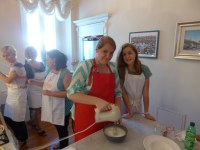 At this point Angelo was going to take us for some amazing gelato – we had eaten gelato at least once a day for a week, but Angelo assured us that we were in for a treat. Unfortunately, we were all very full… so we moved on to an even better surprise. Señor Angelo took us to his home! Here we met his charming wife – she grew up in Boston, but when she married Angelo he informed her that she would need to learn to cook Italian… and she has. We all crowded into her kitchen and were taught how to make tiramisu! Only one problem – the biscuits are supposed to soak in coffee… and here I had to let them know that we do not drink coffee but usually just substitute milk. These kind women did not miss a beat – immediately they were making hot chocolate and we soaked with this instead. They had us add a layer of chopped chocolate in the middle so the flavors blended beautifully – it was delicious. While it soaked we simply enjoyed being in their home…