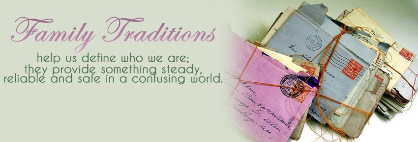 I started to hear this more and more as the children grew older… whether a cherished holiday tradition or making homemade pizza on a Saturday night – the children knew what they wanted… and what they wanted was for things to be done the way that “we ALWAYS do them” – – – The funny thing was that some of these things we had done once or twice… yet I began to learn that these events/activities were important to the children and thus to the family. So, if it was good and positive… I would go ahead and implement, thus forming a Tradition, thus solidifying our family identity and building needed strength and love. Even when this “tradition” didn’t last long… it still provided memories to share together.