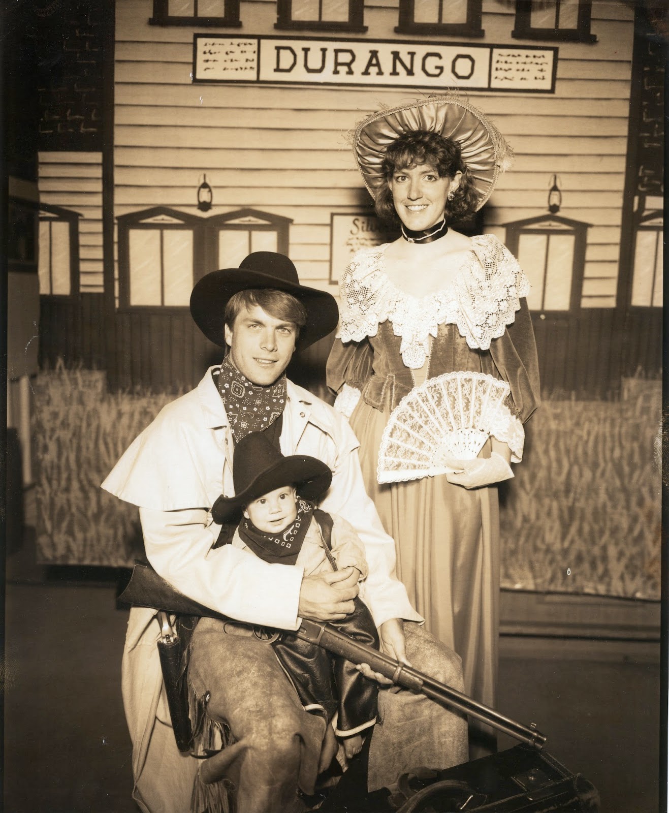 Our first official family vacation was in 1992 when Nathan was about 9 months old. Before that time, our vacation has consisted of returning to California to visit our parents. By now I was working as an RN in the operating room at UVRMC, so although Mark was still a full time student, we had a little money for a hotel and gas to get us there. We found places with refrigerators so that we could pack our food. We drove to Durango, Colorado and went to Mesa Verde. When we walked past the old-fashioned photo shop we both remarked how we had wanted to do these photos as children but neither of our parents would agree… then it dawned on us… we were grown up! We could take have an old fashioned photo taken and wouldn’t our little boy be happy about that when he was older? And so it began.