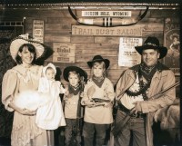 2006 and we are back on schedule for photos, but had no more babies to add. Quite alright, we fill up the photo just fine. Here we are in Deadwood, South Dakota. We are dressed as a gang of outlaws. We thought we should get back to our western theme to celebrate our location, but soon-to-be-8 yr old Natalie flat out refused to be anything but a cowboy. Jackie refused to be anything but a lady in a pretty dress. Kimberly wanted to hold a gun, so we decided to be a gang of outlaws. Mom agreed to wear the dress for Jackie, but balance it out by wearing a cowboy hat and gun. The momma of ruthless outlaws needs to be ready for anything…
