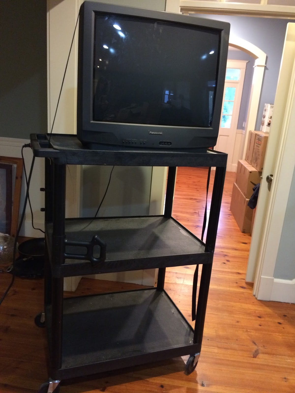 | In WA we kept this “TV” under our stairs and pulled it out to watch movies. |