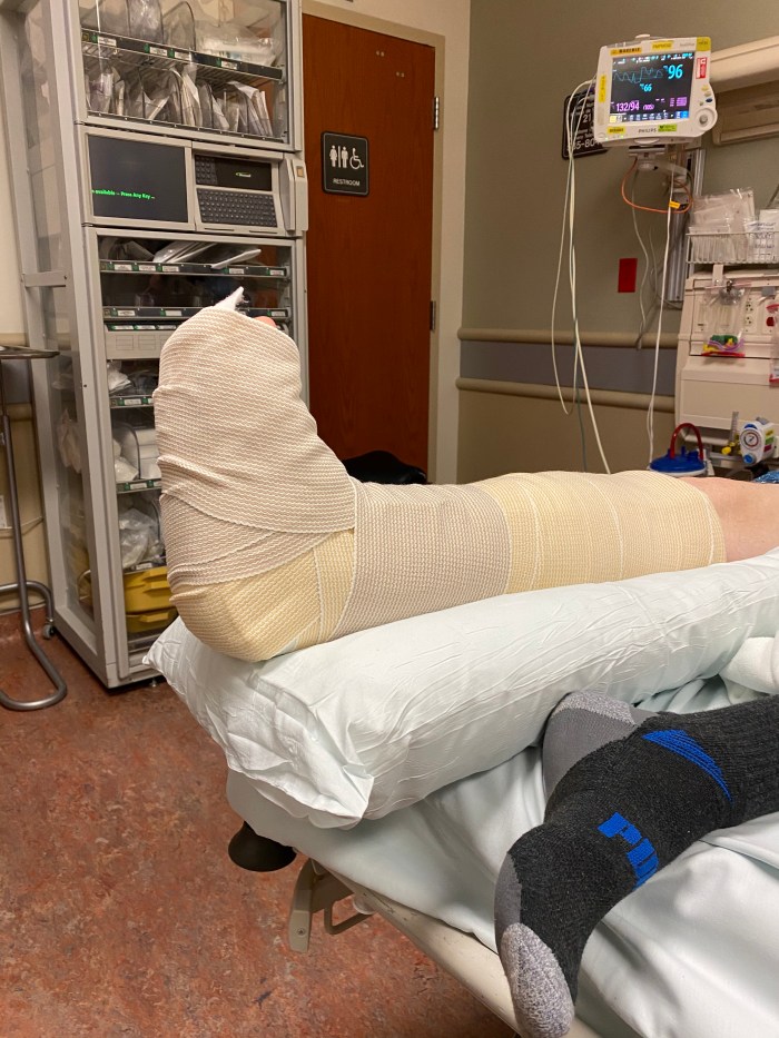 All were incredulous. A fractured tibia should be very painful yet Greg continued to report his pain level as zero. What a blessing! Especially when the doctor manipulated his leg and we watched as the bottom half of his leg moved as an independent unit while the section above the break remained still.