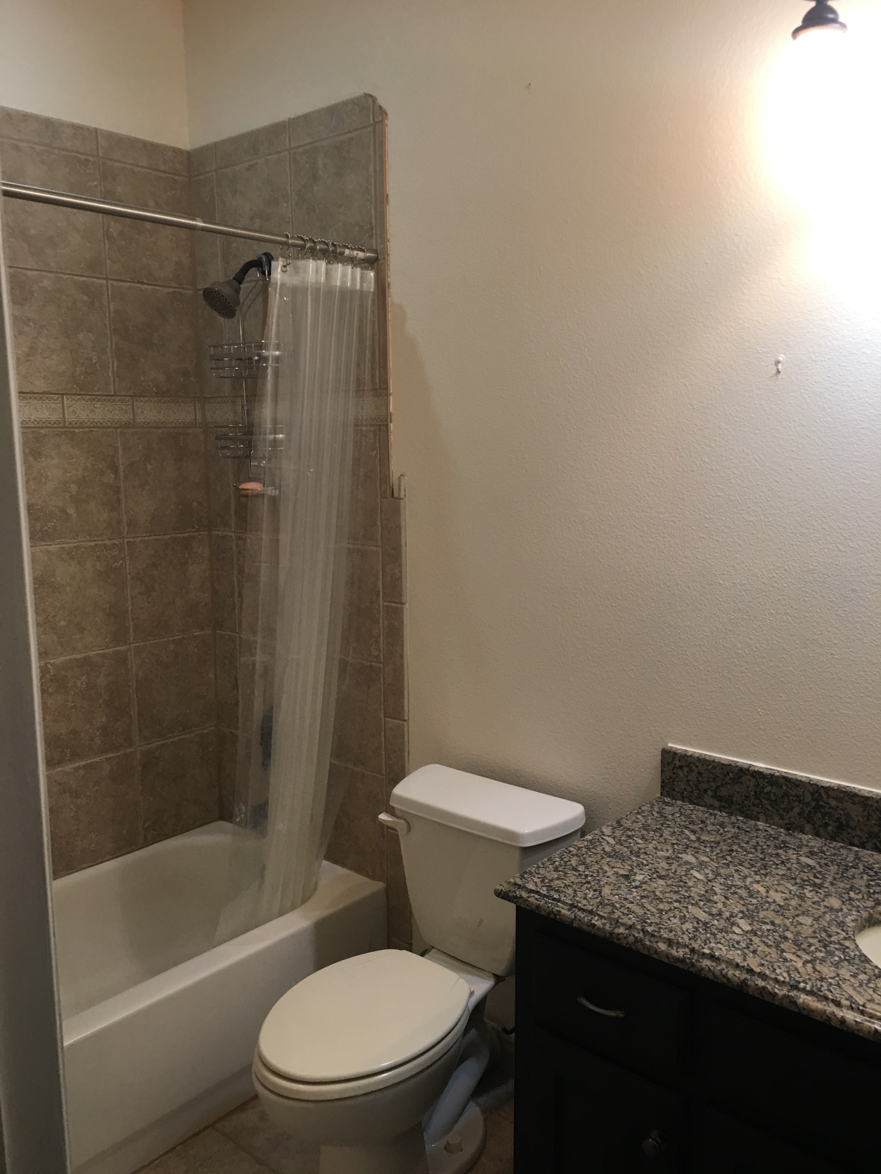 Though the previous owner graciously offered to sell me the custom-made zebra shower curtain for $100, I just had to decline. My vision for this guest bathroom was slightly different than zebras.