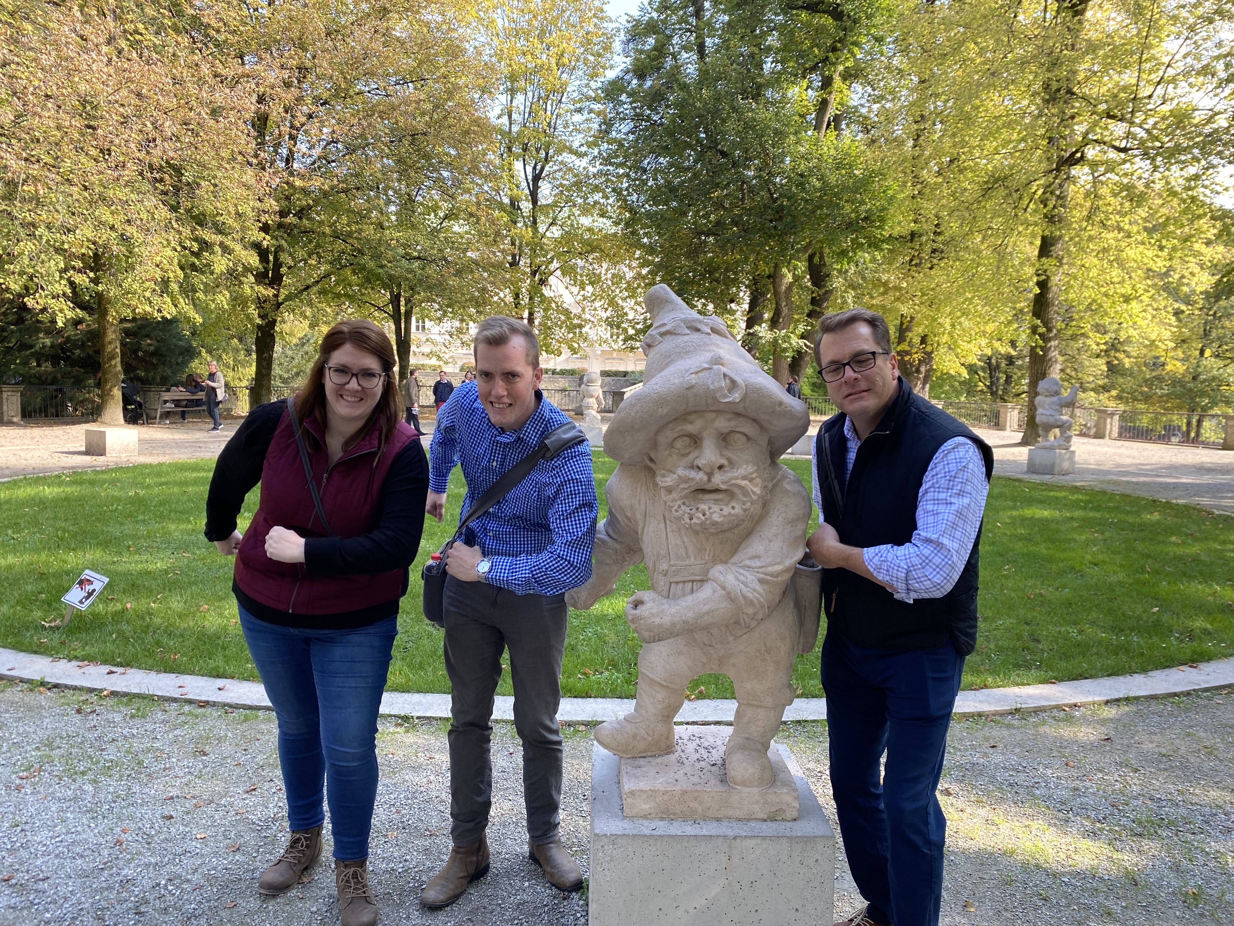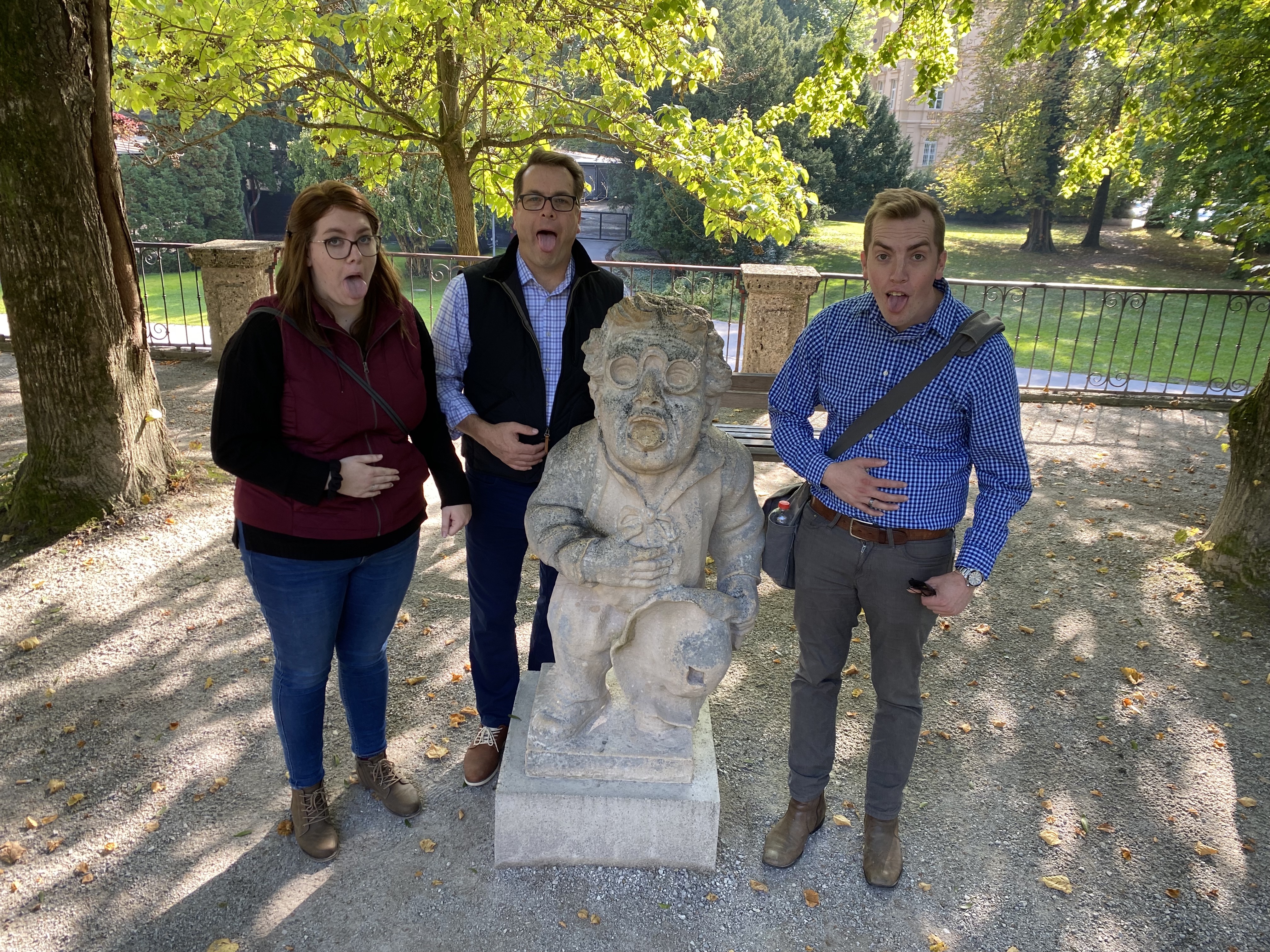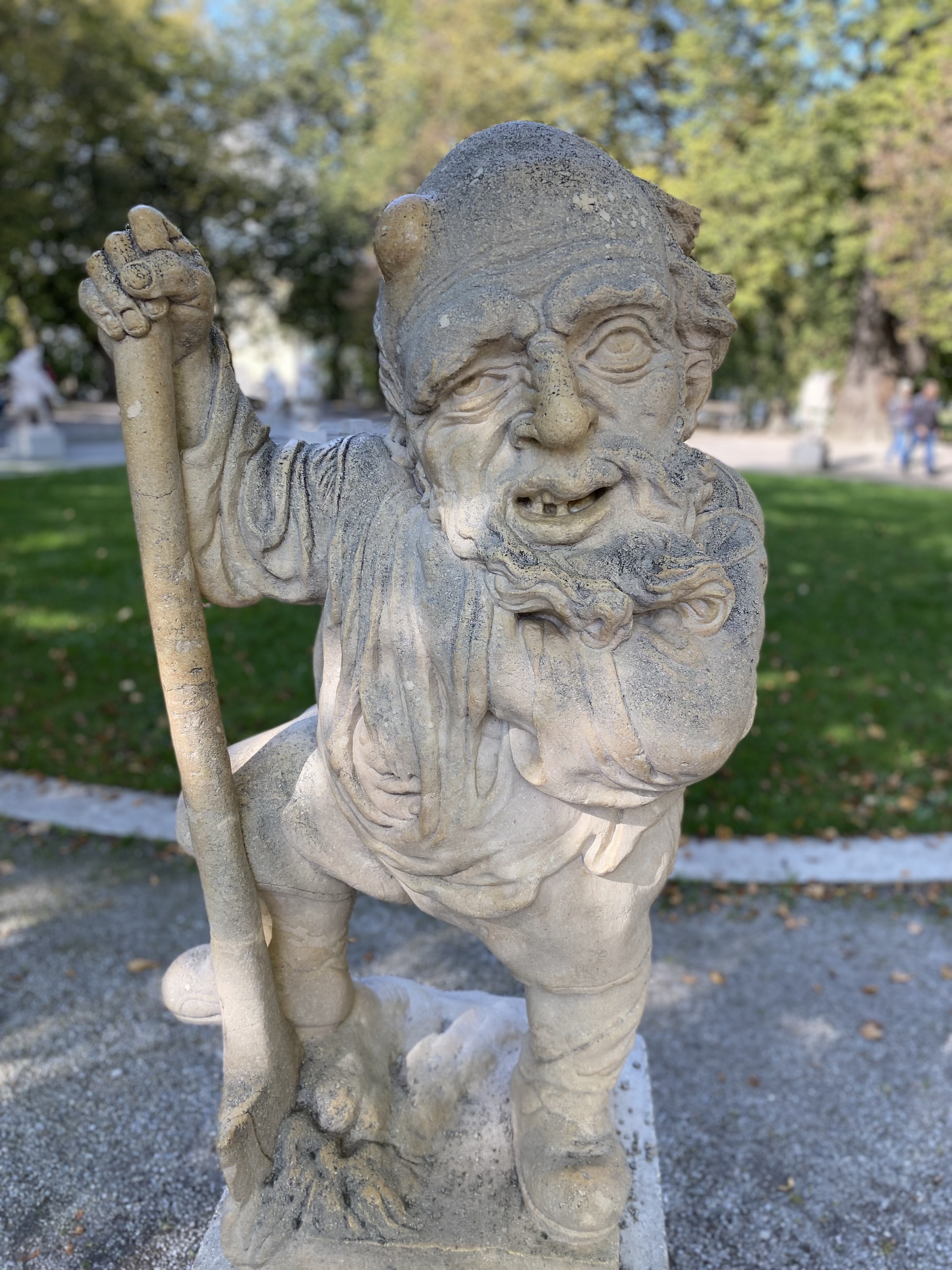We wandered around town. The gardens were our favorite spot. There is an old dwarf garden – the oldest in Europe. It dates to the 17th century but the dwarves were sold off in the early 1800s. They have since recovered most of them. Our hotel garden had a couple of old dwarves – I wonder if they belong downtown? Anyway, they are fun statues to enjoy – each one quite different than the other.