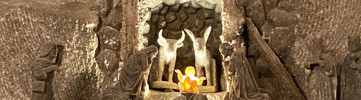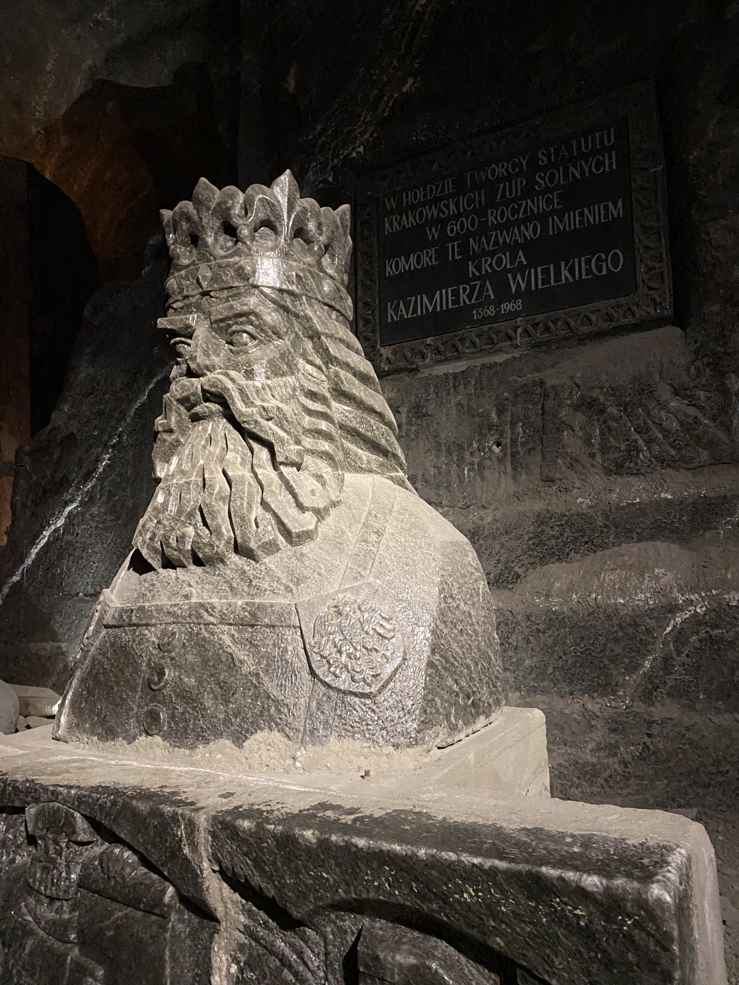 There are multiple sculptures within the mine created by the miners. There are a few chapels because they were very religious. A few of their original sculptures in the small chapels are not recognizable because of humidity in the mine, but there is a huge chapel, beautifully carved. Perhaps completed in the early 20th century? You can have weddings here. Even the chandeliers are salt. And yes, we licked the walls (salt kills germs).