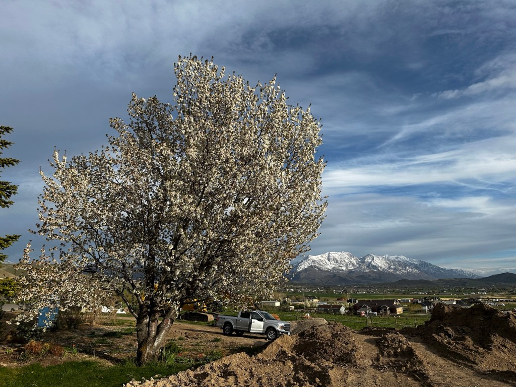 I had planned to share some of the photos I snapped while the doctor showed us the MRI but I have changed my mind. Just know there are somewhere between 8-12 tumors that I can easily see. It is truly terrible. Instead I will share some photos from around our property that brought me joy and a blessed distraction. I love the large tractors parked together as well as our small and very large cherry trees in full bloom. We seem to be surrounded by beauty!