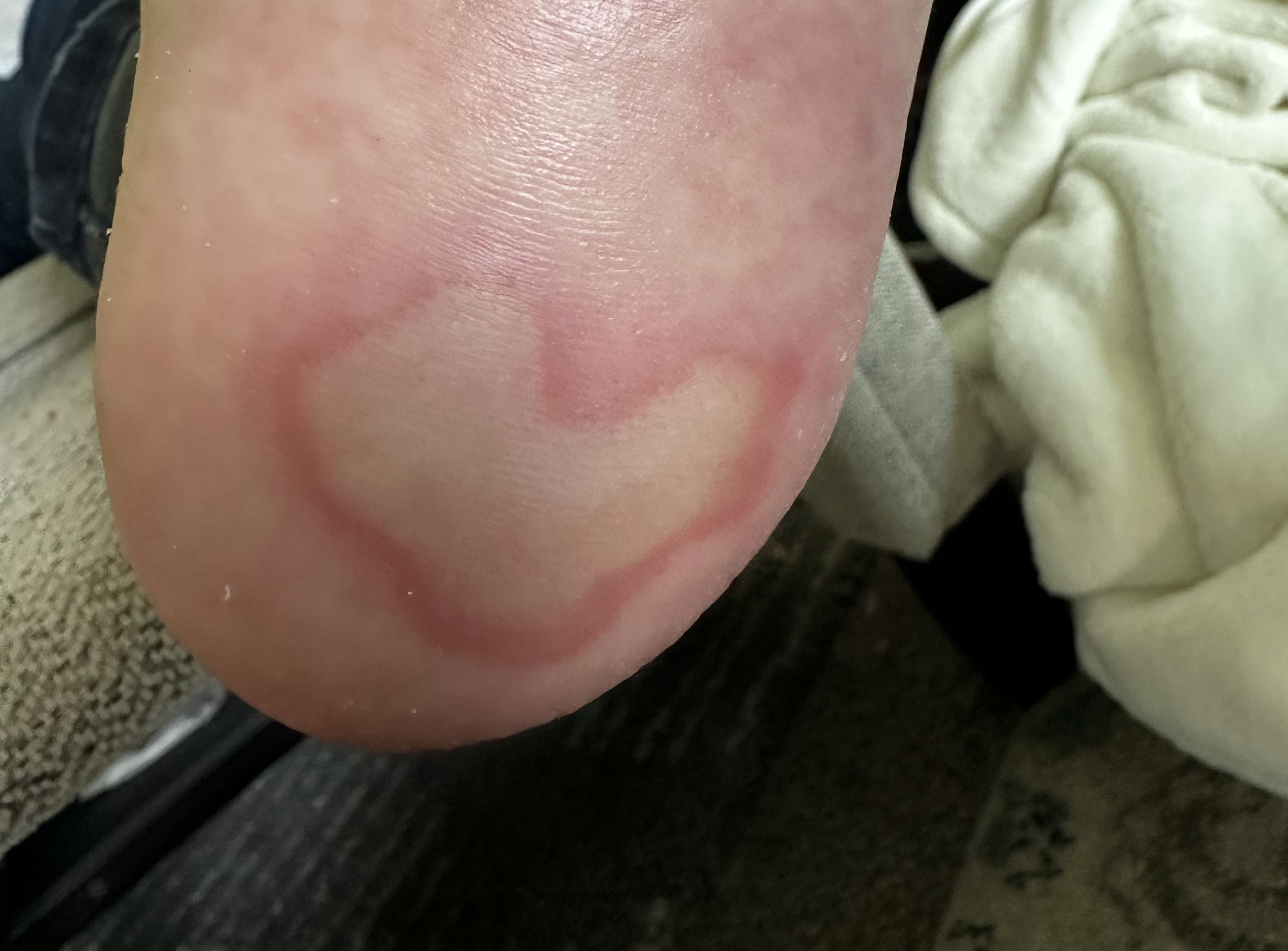 Last Sunday marked the end of the week and we had the feet well under control using moisturizer. We had assumed that the redness and bumps happening around the head and face were also a part of this (could it be hand/foot/head syndrome if you are bald?) but they continued to get worse. Right before bed Mark broke out in such a crazy rash – all over his body. I won’t post photos but… wow! I made sure that there was no facial swelling and that he was still breathing fine. Wanting to avoid the night staff, we waited until first thing in the morning to send photos to our doctor. Within five minutes they were calling us asking about swelling and breathing. They told us to stop taking the meds but we had already figured this out. The plan was to let the reaction settle down and then begin again on a lower dose.