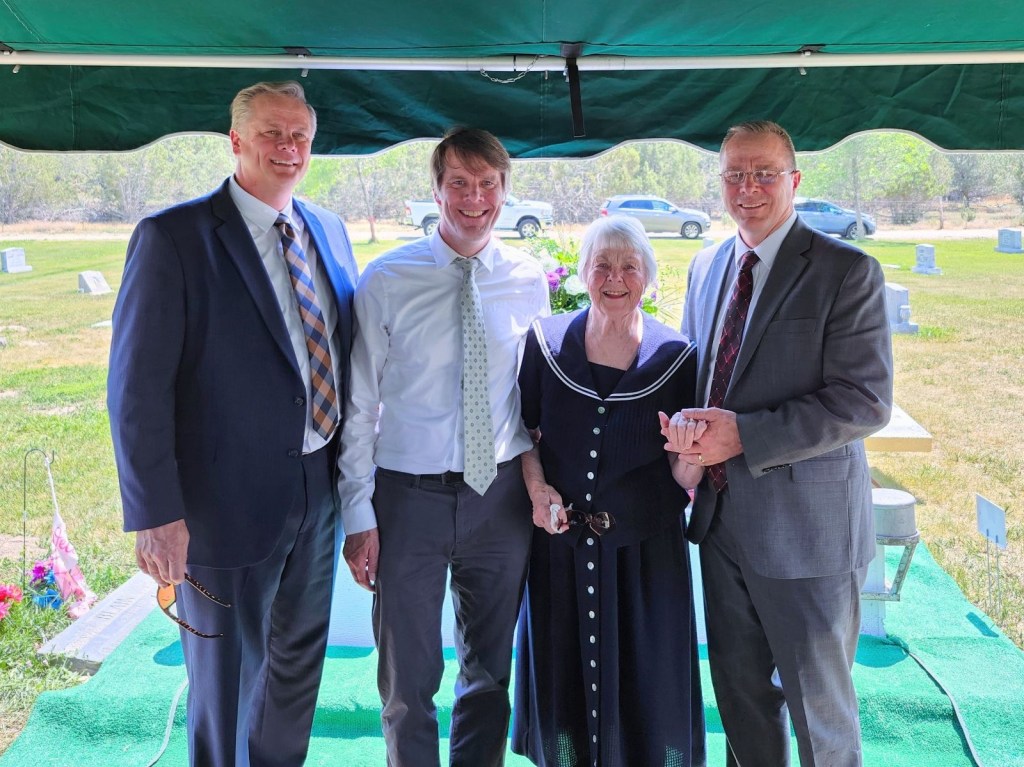 All of Mark’s posterity joined me at the funeral home to make plans for the funeral. It was great to have that support and we came home and put the program together. We wanted to keep it traditional as well as personal, a real tribute for Mark. It helps that we have an organist, a soloist and great speakers in the family. Nathan gave the eulogy and his three brothers spoke at the funeral and graveside. Sisters-in-law were there to offer prayers, play the organ and sing Amazing Grace at the graveside. If you know our family you will know that it was Brenda who sang – Mark first heard her sing Amazing Grace at his sister’s funeral 20+ years ago and has planned on that ever since.