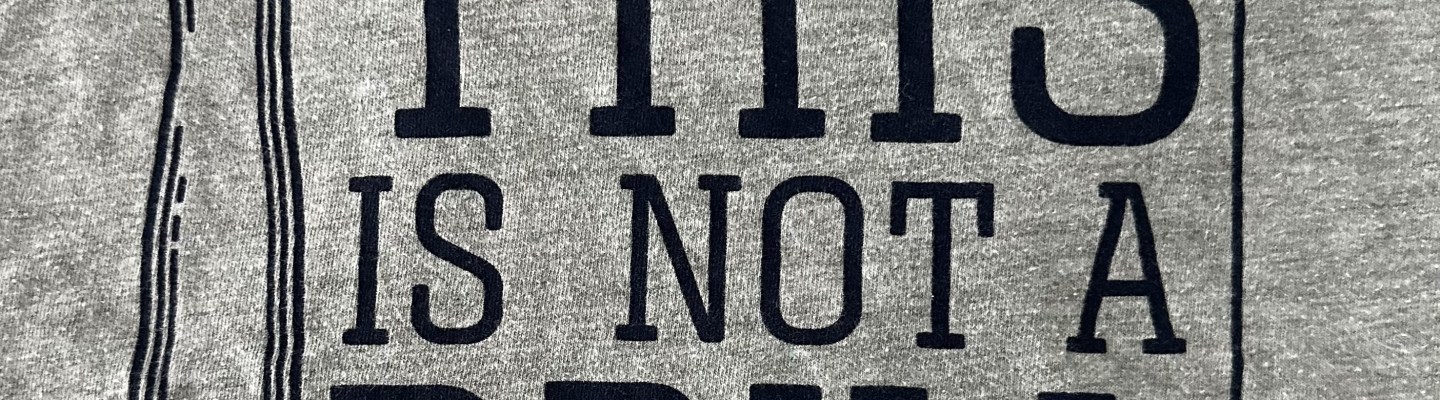 THIS IS NOT A DRILL – this is also seen on a t-shirt that Mark used to wear. It had a picture of a hammer (not a drill). It always made me smile and I like to wear it now.