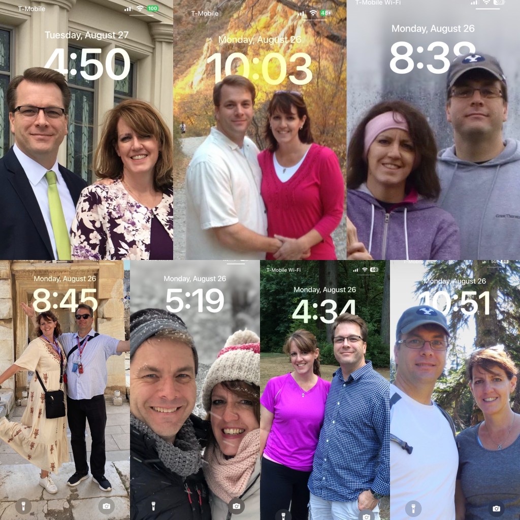 My final action was something I felt prompted to do with my phone. For two months I have enjoyed (?) a photo-shuffle screensaver of 50 of our couple photos (because Apple only allows 50). I could tap them and gaze at the two of us in such happy memories. Well – I switched over to a photo-shuffle of 4 pictures of Jesus. At first I resisted because I thought that I would miss my Mark & Corinne slide show, but it has had quite a different effect.
