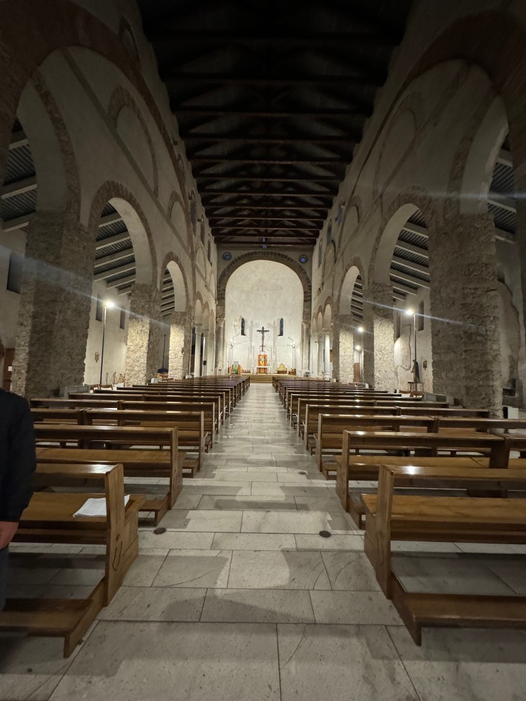Once again we enjoyed meeting with Stacey’s contacts here in Salerno. There is mutual excitement for the upcoming concert which will be on MayDay, kicking off their local festival. Their church choir will open the concert before turning the stage over to BYU Singers. The church itself was rebuilt on an old Roman foundation and was beautiful in its simplicity.