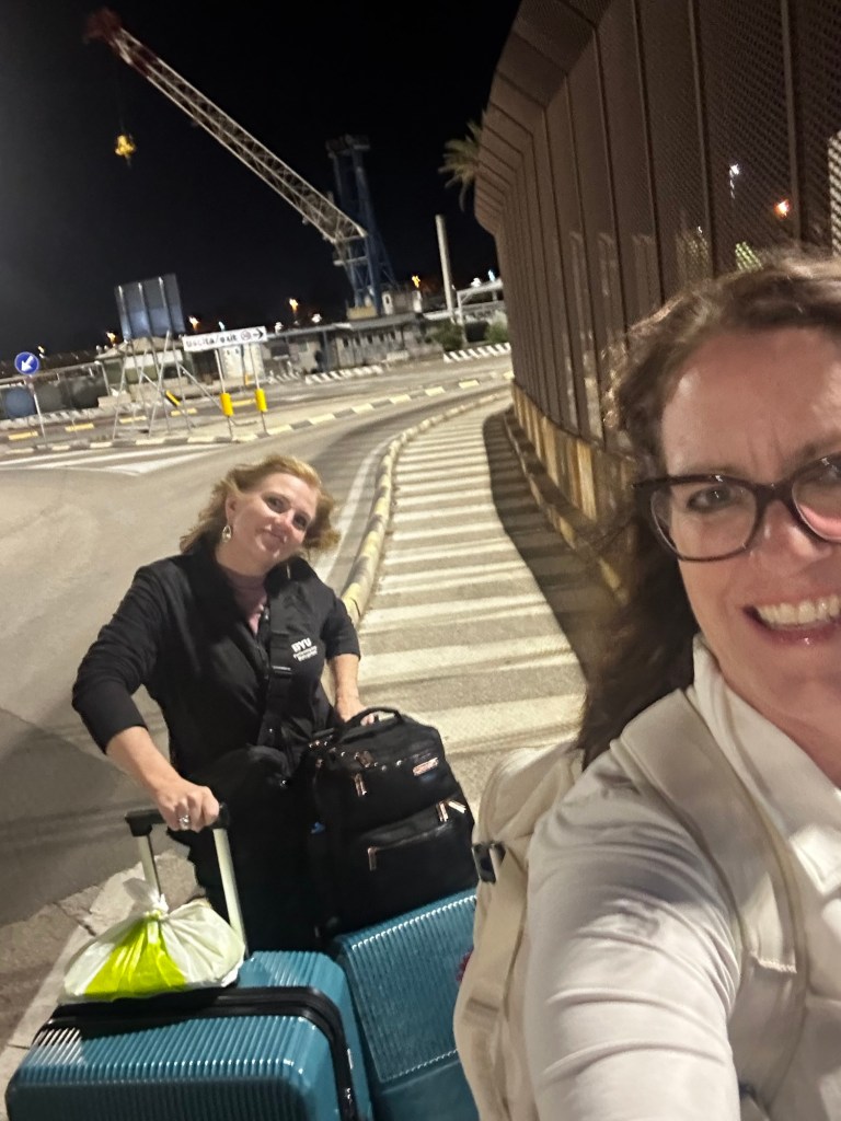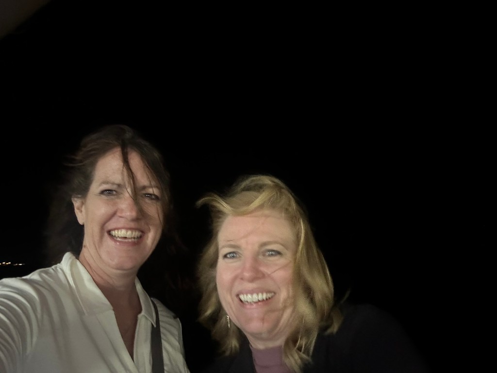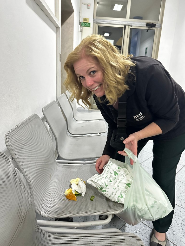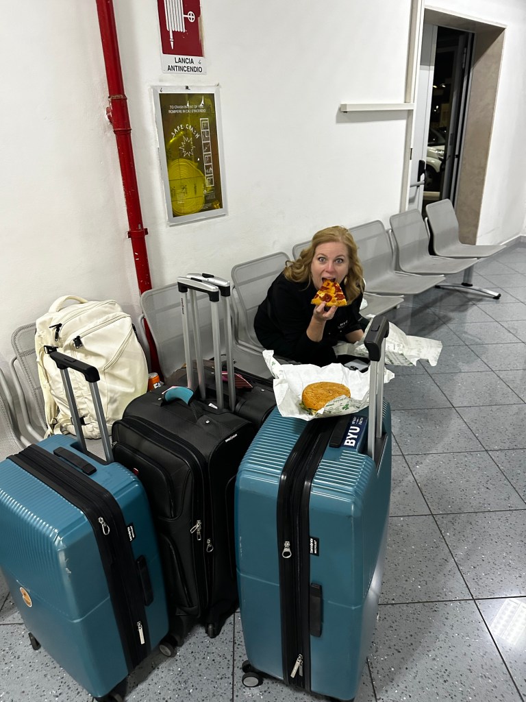 Well – I have to say that the terminal food was not edible. It was so bad! We just had to throw it away and something about that moment – when Stacey picked up the plastic bag full of our food and it spilled all over the chair and floor sent us into another round of doubled over laughter. Fortunately we had found a secluded row of seats so our only audience was ourselves. One thing I always appreciated about travel with Mark was that neither of us would get worked up over anything that went wrong. I would laugh and he would be calm but neither of us would be upset. Now traveling with Stacey we both laugh – and both of our husbands would remain calm were they with us… and I hope that my husband is with me at least part of the time because Stacey still gets to call home.