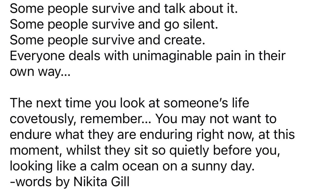 I have also heard from several people that they wanted to be treated like they were before – as a normal person with something to contribute. How do you balance this with the compassion that they need? I don’t know.