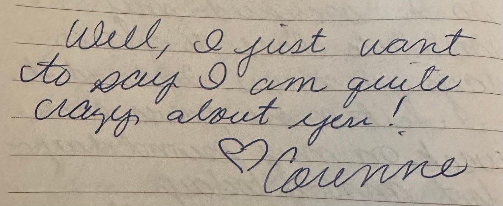 Such a sweetheart – can you see how these “love notes” have sustained me in my loss? (Or does it make me miss him even more? No one else on earth talks to me like this!) So I certainly shouldn’t whine that he didn’t say I was pretty often enough. Perhaps I was spoiled. Perhaps we were both spoiled. Shouldn’t we all be spoiled by our spouses… wait! Don’t go there – just spoil him/her and see what comes of it over time. Usually one of us was better than the other and it would change with time and then change back again. I hope it will make a difference for others. I am very aware that relationships are complicated and this seems simplified… but…. it won’t hurt to try.