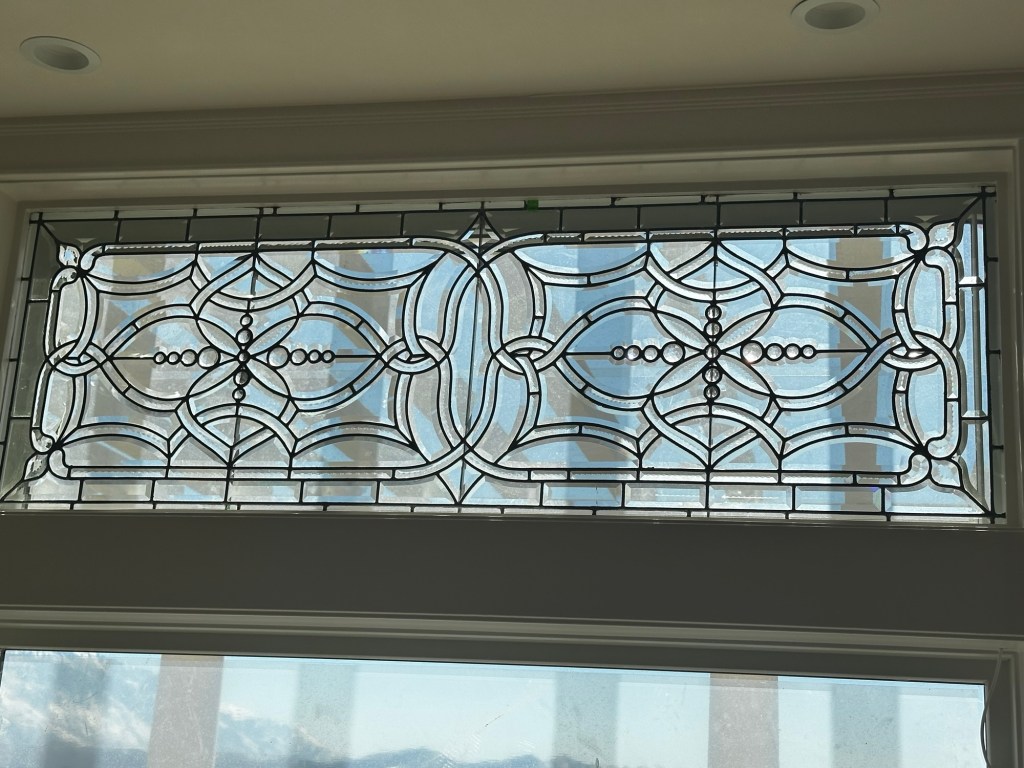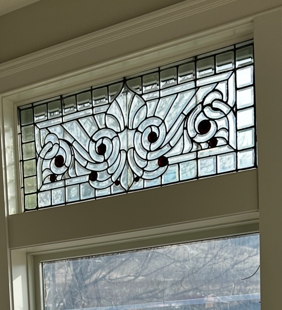 I loved them from the beginning and perhaps got a little carried away – well, I would love to have purchased a whole lot more but disciplined myself to know when to stop. There was one more I really wanted that had some pink glass…. oh well. Mark was very supportive and eventually chose a window of his own which is now a transom in our family room. (They are mostly transom windows.) I found a set of eight matching windows – they are only fifty-ish years old. Someone in Pennsylvania had them made to restore an old Victorian home. I thought that fifty was old enough, but all the rest are one hundred years old or more.