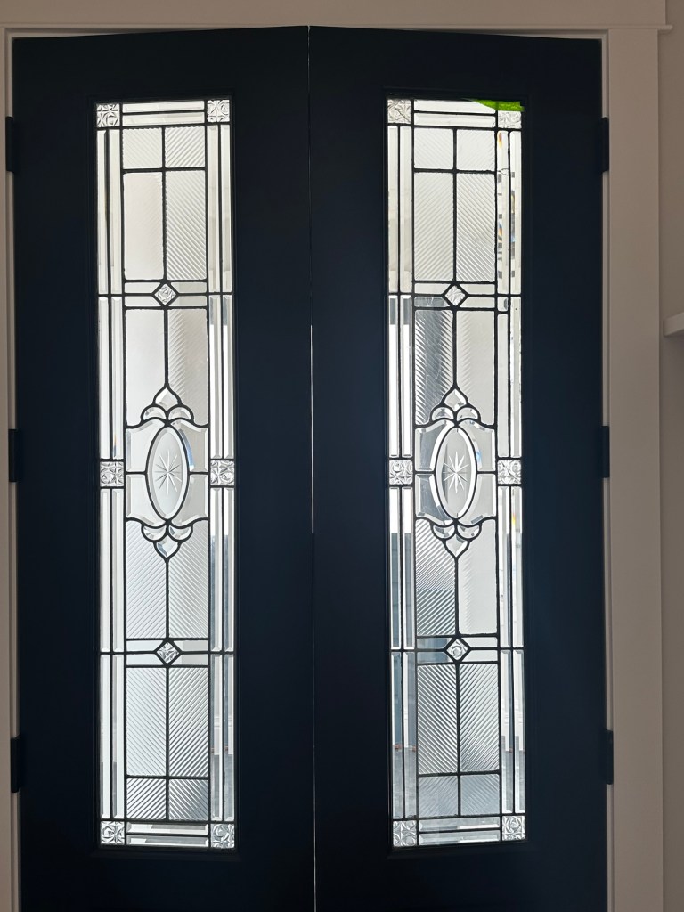 Not all of them have a story. Two were put into doors and they came from a salvage yard in Portland. We found them a couple years ago while on vacation. During this same time we found an antique fireplace surround which is now in my bedroom. Mark was happy to drive back to Portland for these items because he also found an antique desk that he loved. It will definitely have its place in our home as well. We would have had a very small attic-style upstairs if Mark had not wanted an office with a deck so that he could talk on the phone outdoors. He only had a few requests and I gave him whatever he wanted. So now I have a large upstairs, an antique desk and Mark’s deck (Dad’s deck)! I am sure that he is pleased!
