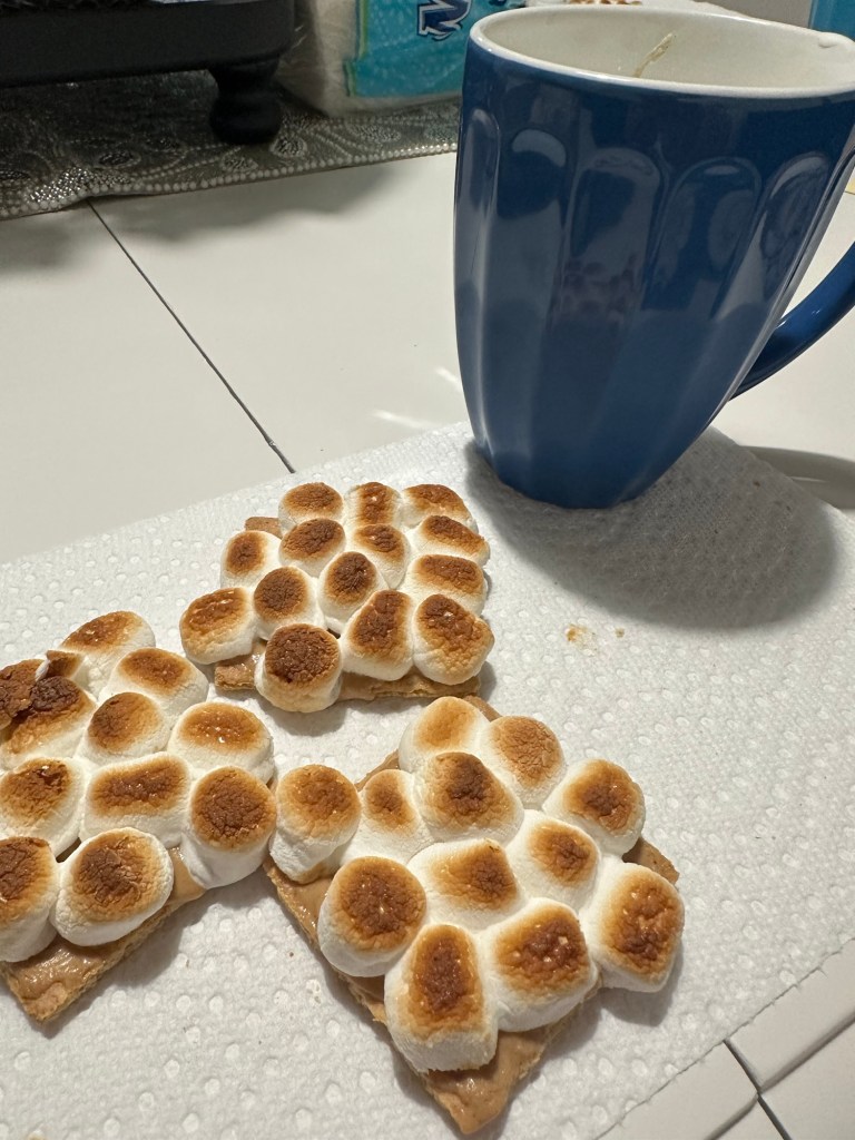 Commemorating our one year anniversary. We began and ended our day with some of Mark’s favorite foods – well, the marshmallows were my contribution to his incessant graham crackers and peanut butter so our kids grew up with this treat.